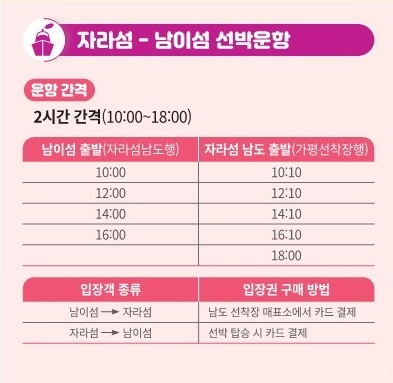 자라섬 - 남이섬 선박운항