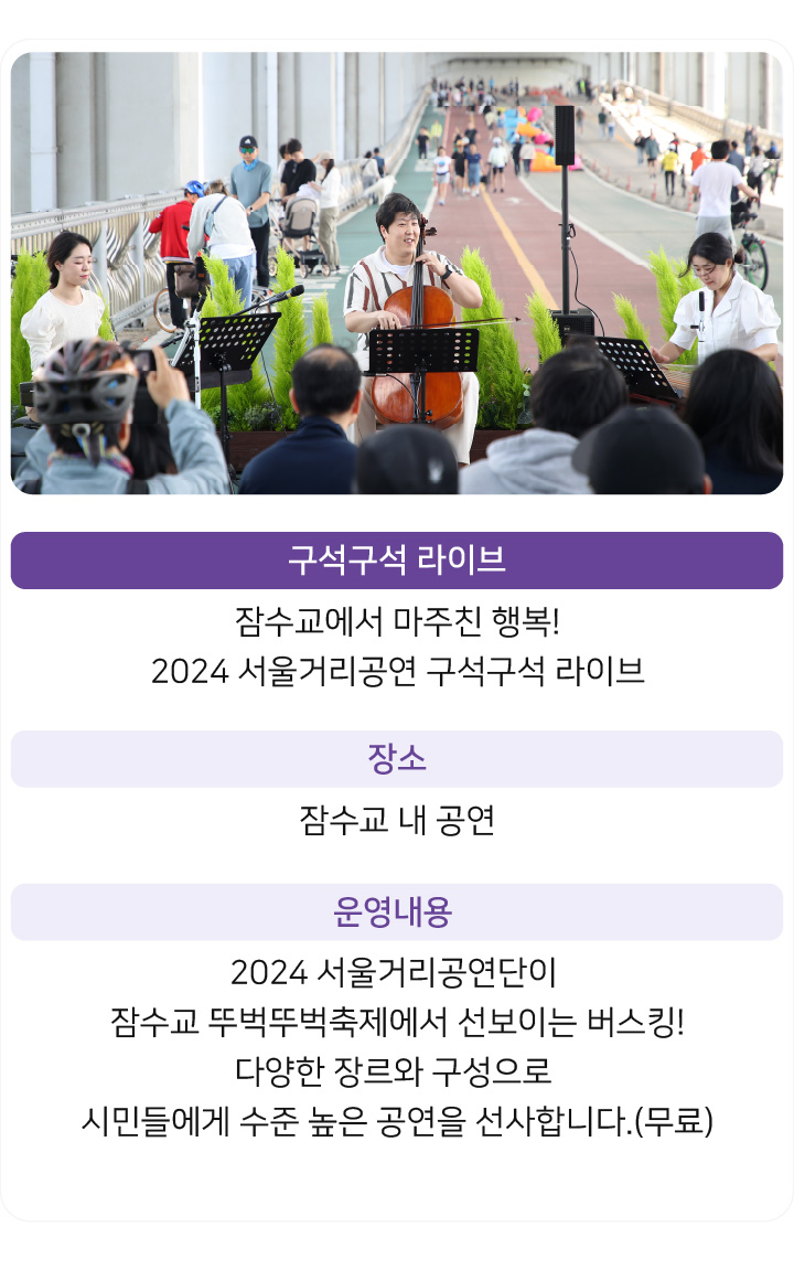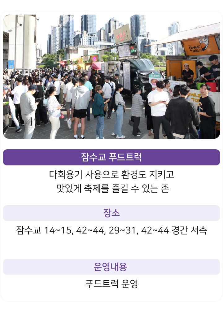상설프로그램에서는 다양한 먹거리와 볼거리, 즐길거리들이 가득합니다. 뚜벅뚜벅 축제가 제공해 주는 특별한 경험을 체엄해 보세요.
