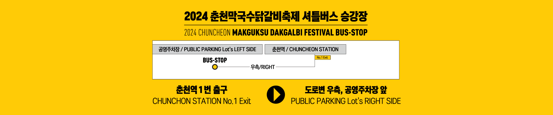 춘천역 2번출구로 나오신 뒤, 오른쪽 공영주차장 부근 버스승강장 위치해있습니다.